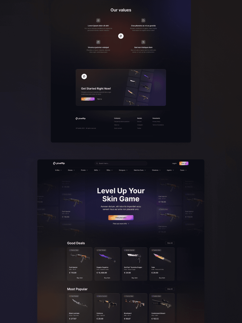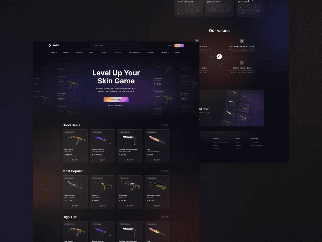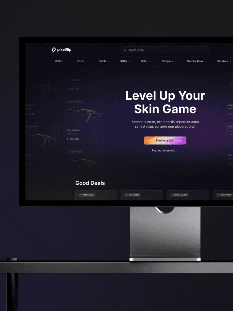 A complete brand and platform design for a next-generation CS2 skin trading marketplace.
