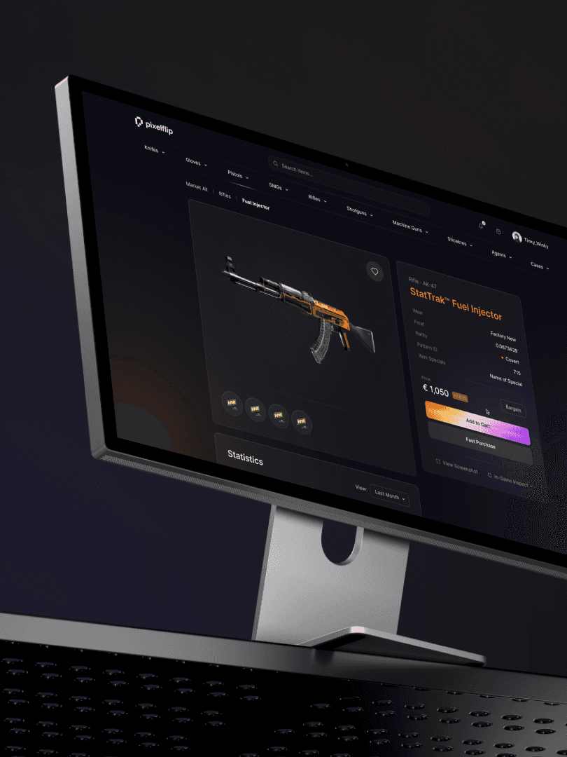 Pixelflip blends gaming aesthetics with fintech-grade usability, delivering a seamless experience for traders managing and exchanging digital assets in real time.